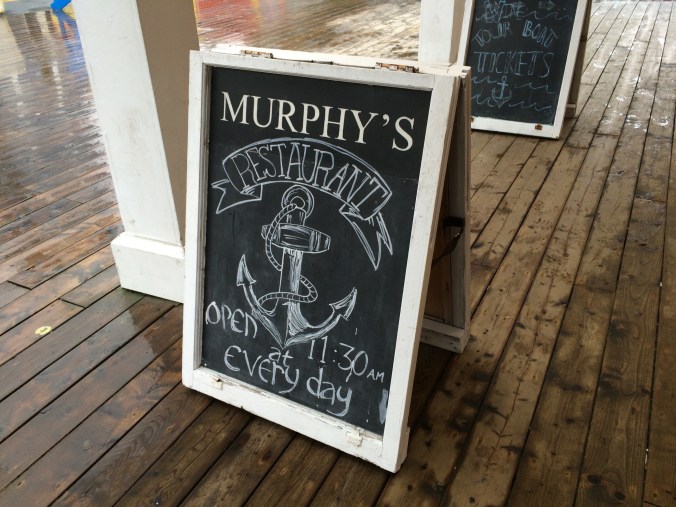 Prominent on the dock is Murphy’s restaurant – the very one we had discussed visiting last night. It looks lovely, surrounded by pier and boardwalk, and enhanced by a paddle boat moored right beside it.